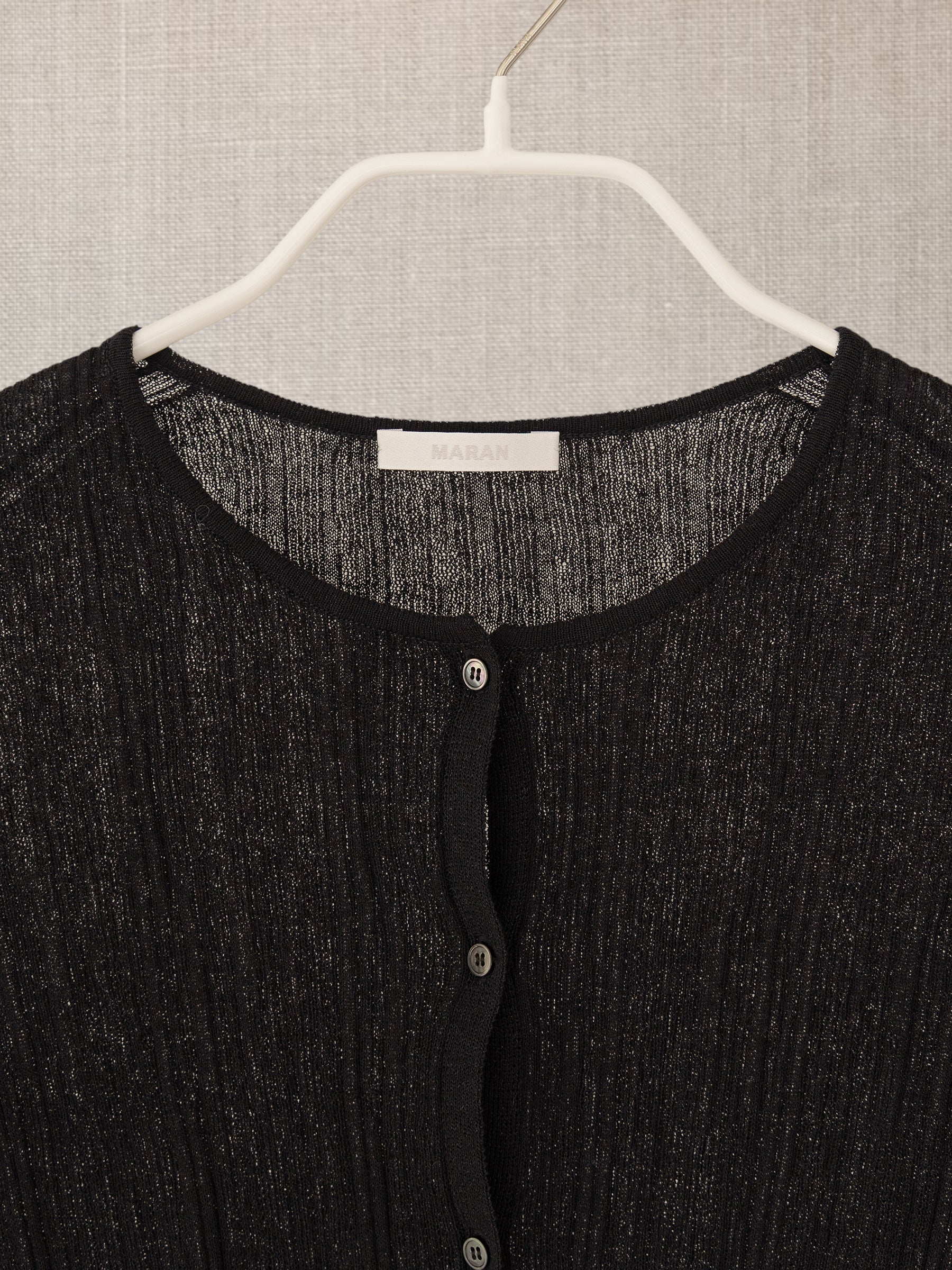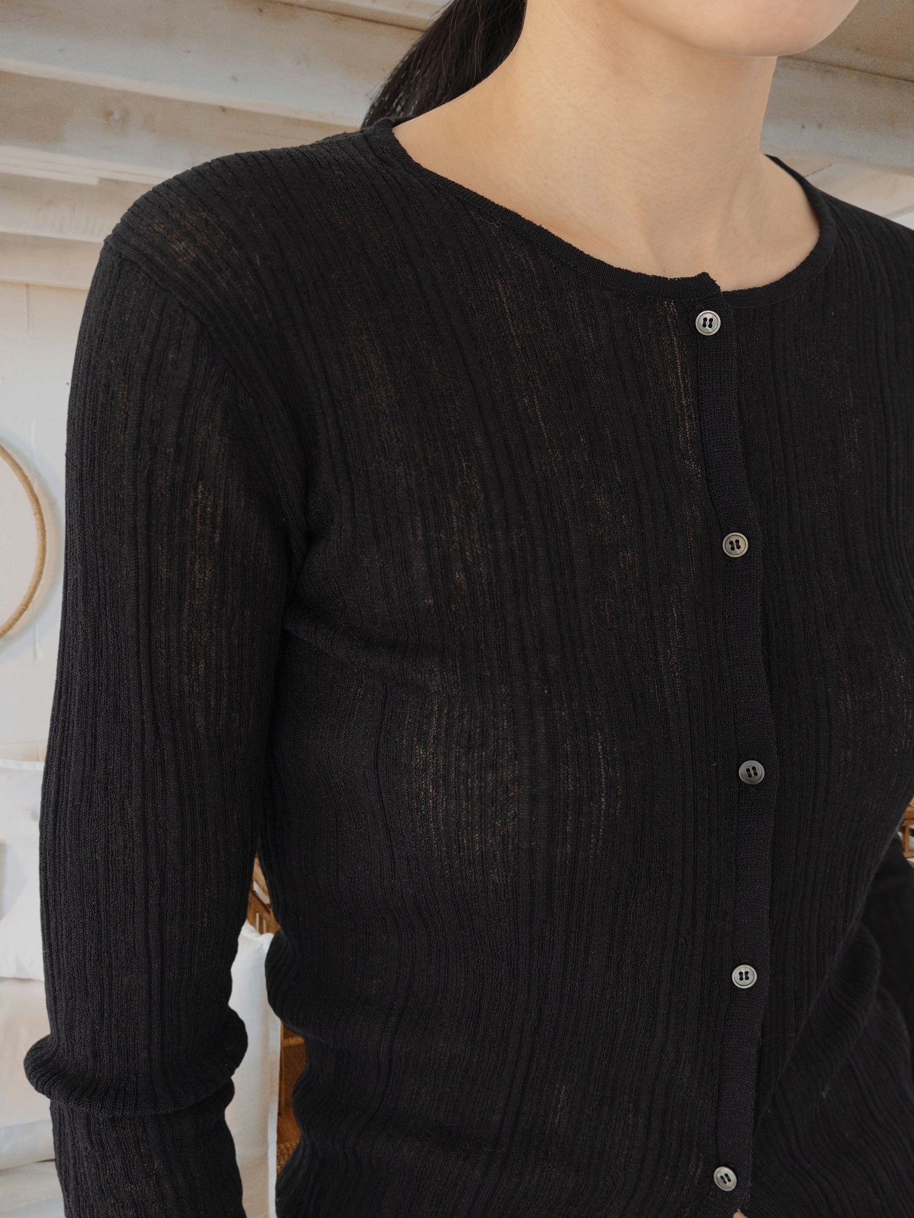 Le bouton central permet de la porter fermée en top ou ouverte en cardigan léger.