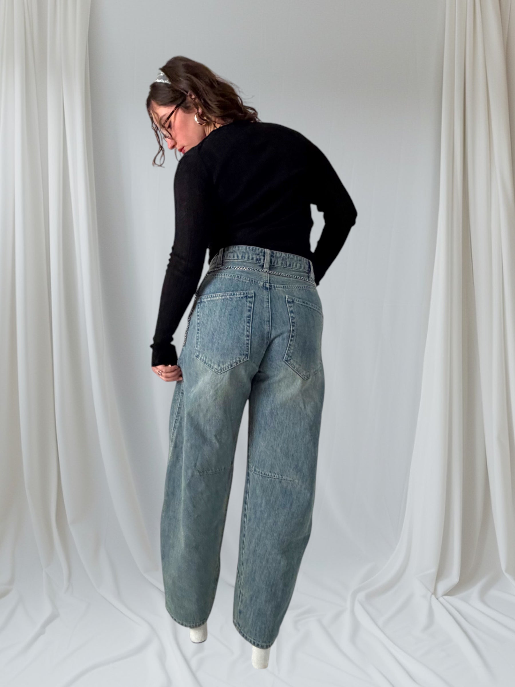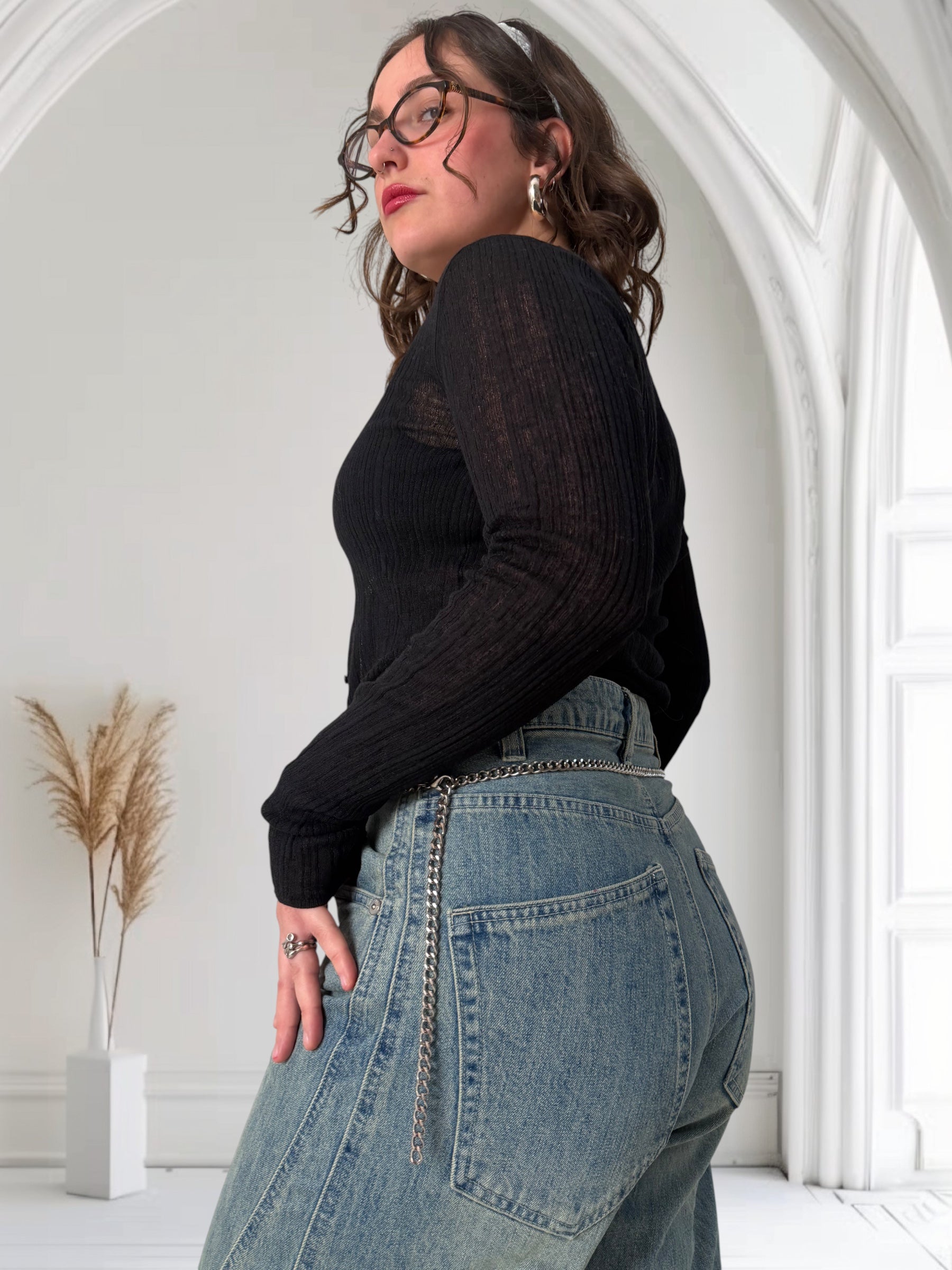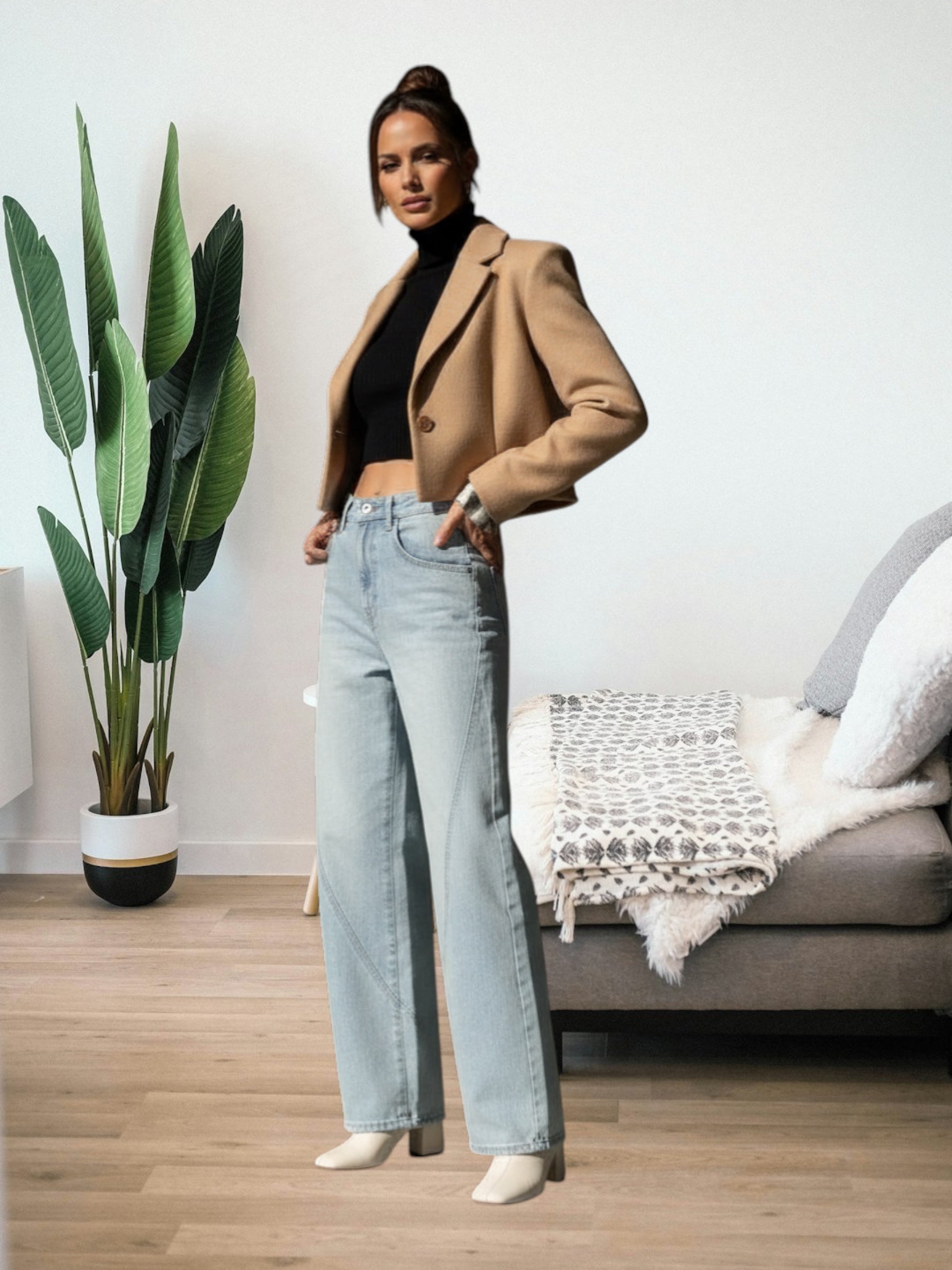 Le jean SÉOUL LINE ample à la ligne architecturale.