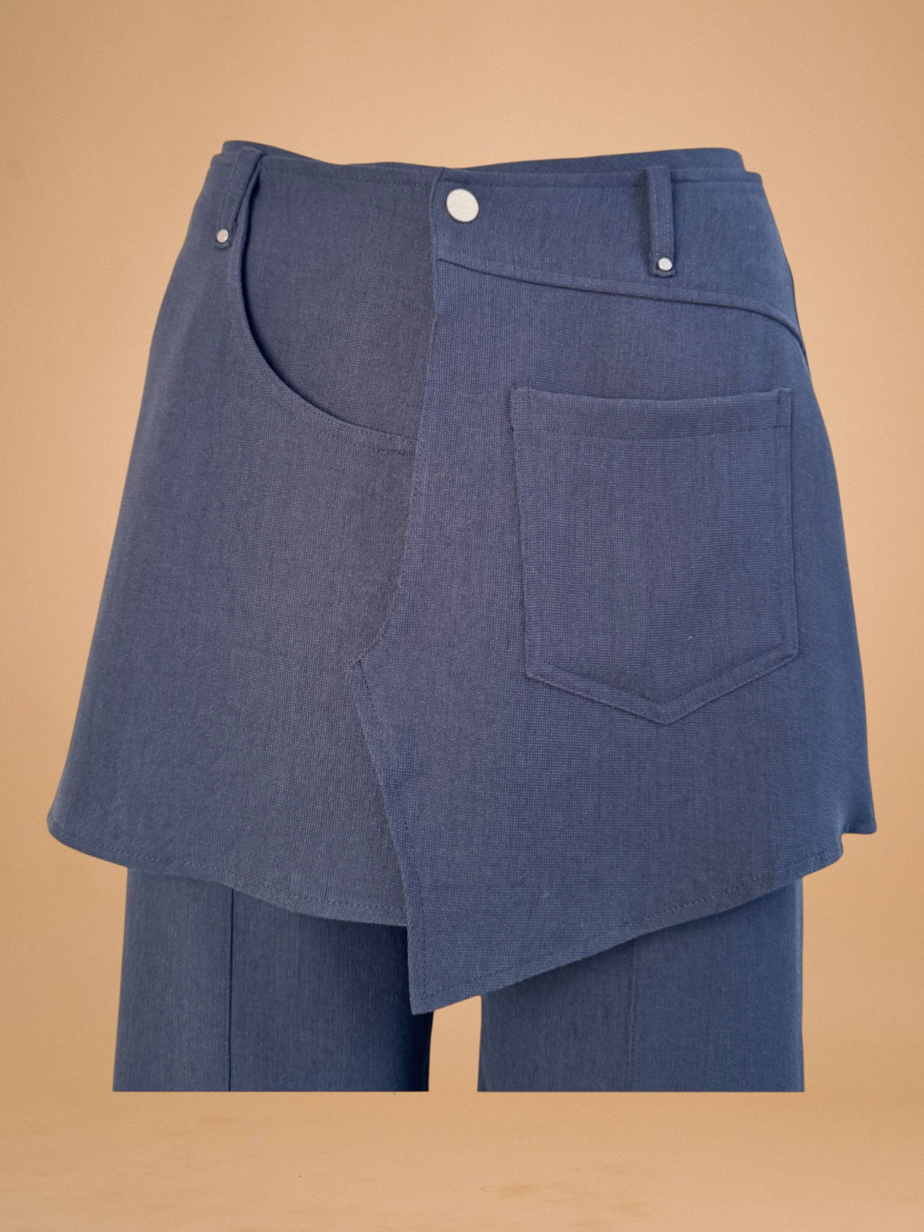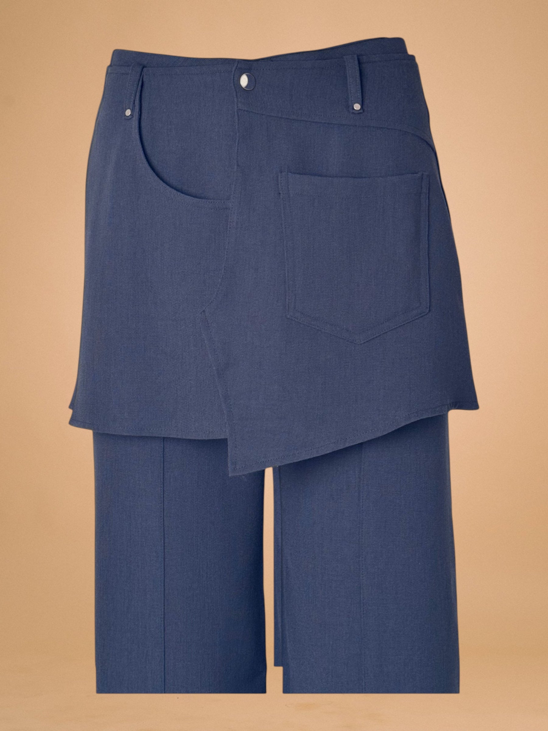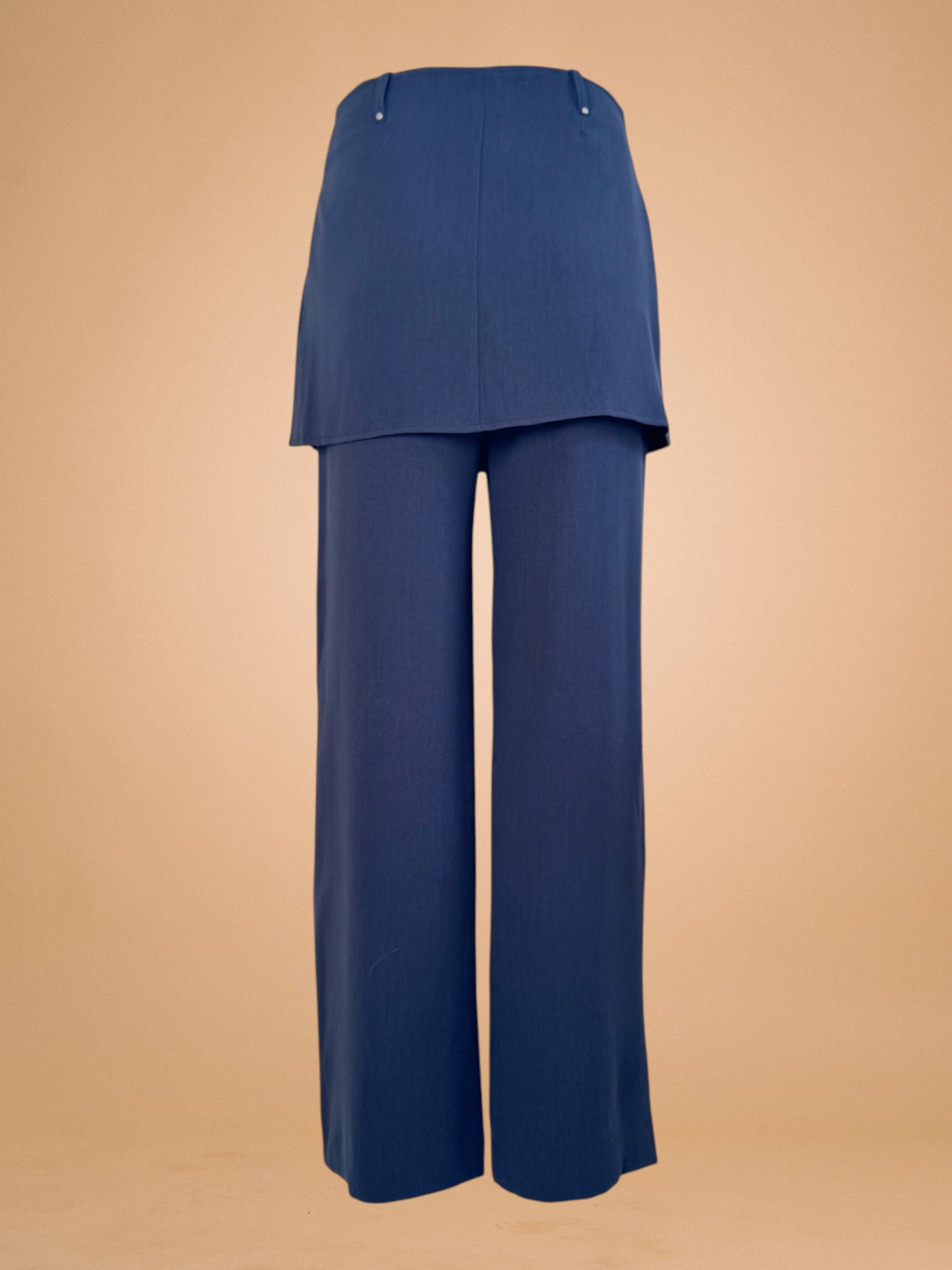 Pantalon-jupe DAL bleu marine à une ligne longue et fluide. Il incarne l’équilibre entre structure et mouvement.